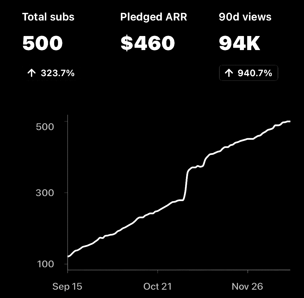 We recently crossed 500 subscribers, with 94,000 views over the past 90 days. Subscriber growth during this period exceeds 300%, and readership has increased nearly tenfold. In context, that trajectory is unusual.