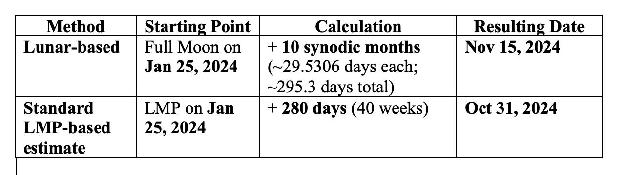 At first glance, calculating due dates by moon phase may seem like harmless fun. The risk is when patients take it seriously, dismissing medical advice or feeling betrayed if their experience does not match the prediction. In obstetrics, precision matters—timing influences monitoring, induction, and interventions. Giving patients a false sense of certainty can delay necessary care.