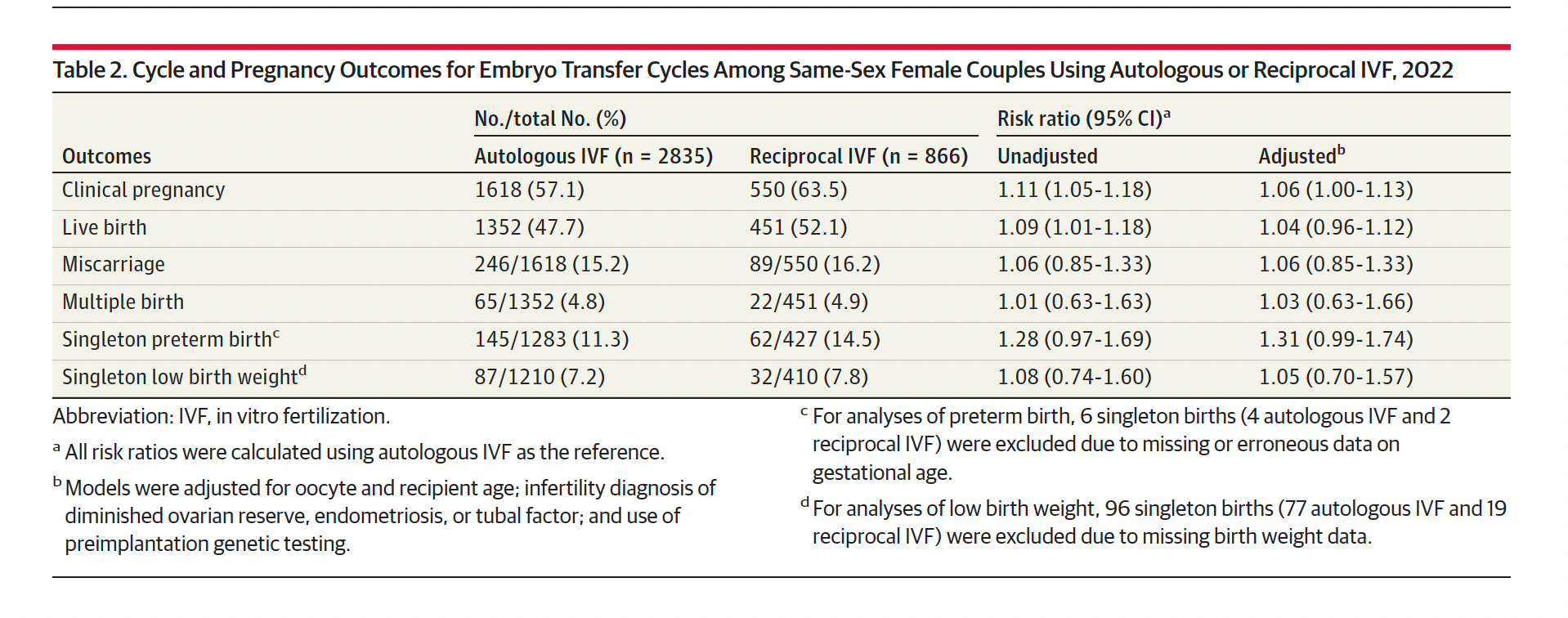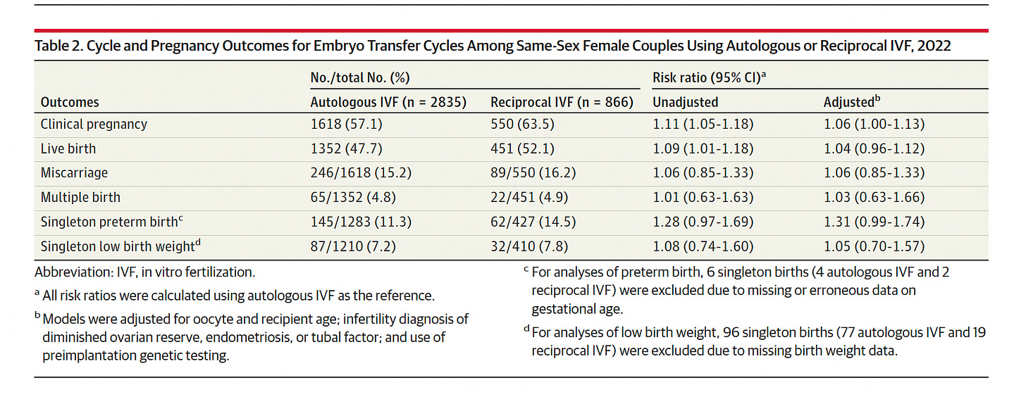 The Evidence RoomOutcomes of Same-Sex Female Couples Pursuing Autologous and Reciprocal In Vitro FertilizationAmos Grünebaum, MDFeb 12, 2026∙ Paid1ShareTitle: Outcomes of Same-Sex Female Couples Pursuing Autologous and Reciprocal In Vitro FertilizationAuthors: Diego D, Gaskins AJ, Hipp HS, Kawwass JFJournal: JAMADate: Published online February 12, 2026DOI: 10.1001/jama.2025.26962Continue reading this post for free, courtesy of Amos Grünebaum, MD.Claim my free postOr purchase a paid subscription.PreviousNext