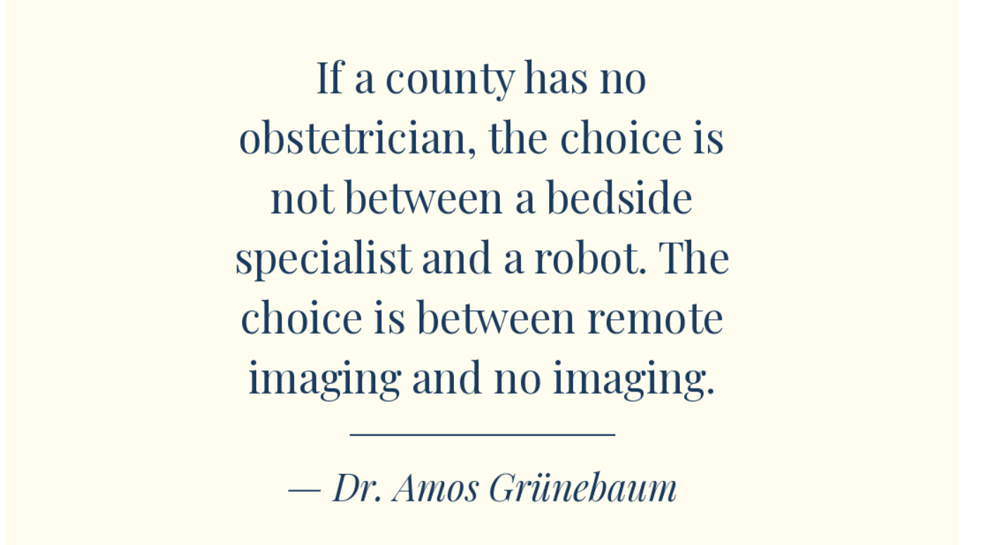 If a county has no obstetrician, the choice is not between a bedside specialist and a robot. The choice is between remote imaging and no imaging. The correct comparison is not ideal care versus technological care. It is incomplete care versus slightly less incomplete care.