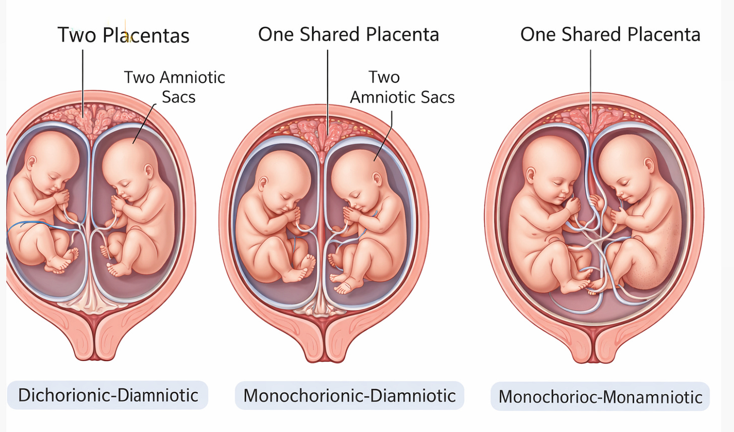 What you are almost never told, at least not clearly enough and not early enough, is that twin risk has almost nothing to do with the number of babies. It has everything to do with the placenta.