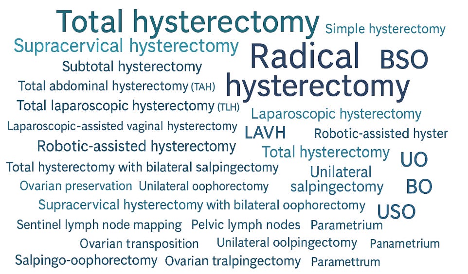 Hysterectomy terms about the uterus and cervix
