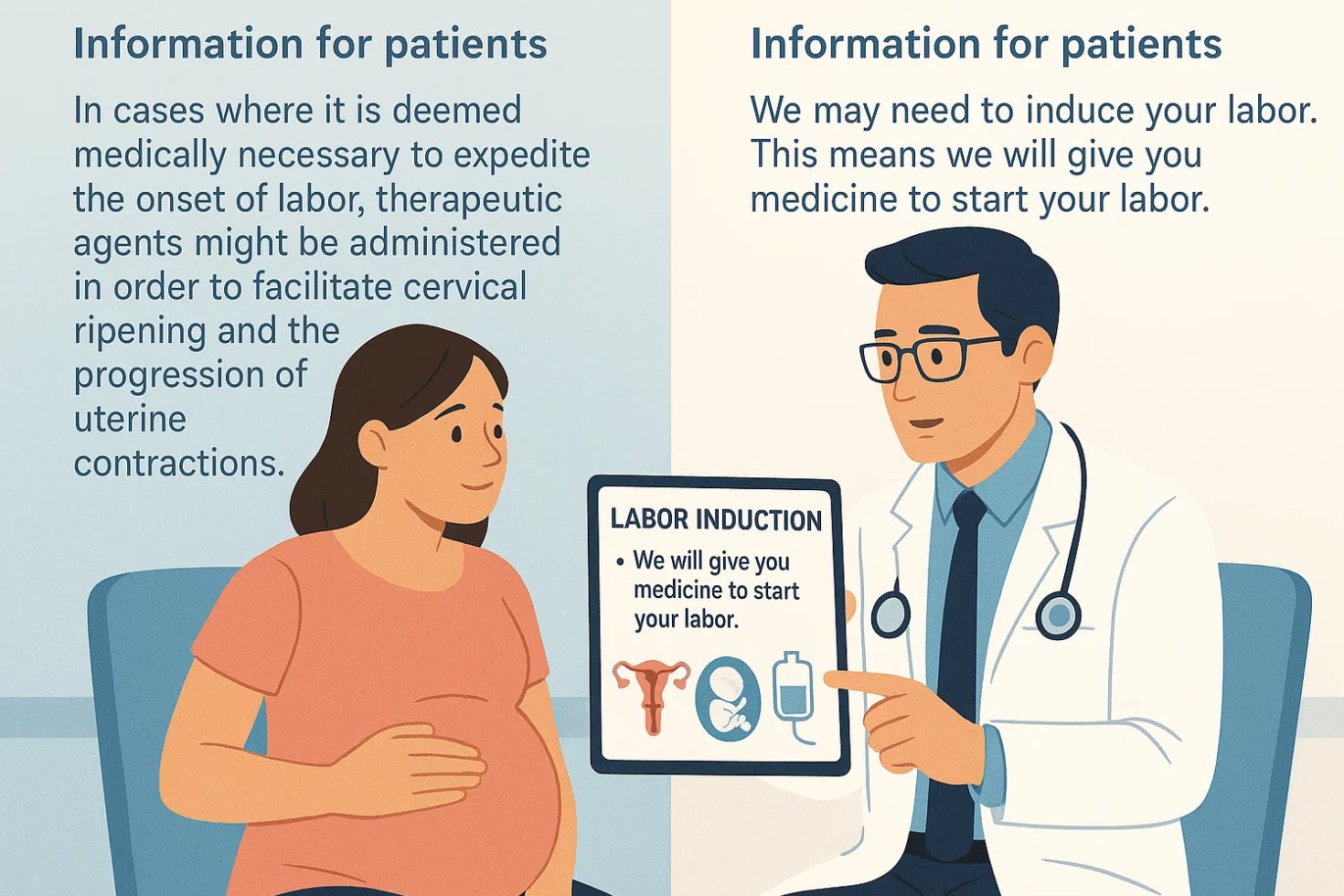 At that level, explanations would use shorter sentences, everyday language, and clear cause-and-effect phrasing—such as “labor is started to protect the health of the mother or baby when waiting is no longer safe.” Simplifying structure without losing accuracy allows patients of all literacy backgrounds to understand risks, options, and alternatives well enough to make informed decisions.