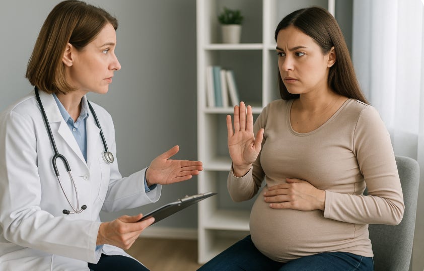 Not every situation allows a “middle ground.” With placenta previa, for example, the only safe path is cesarean. Presenting vaginal delivery as a legitimate “shared” option is misleading at best and dangerous at worst.