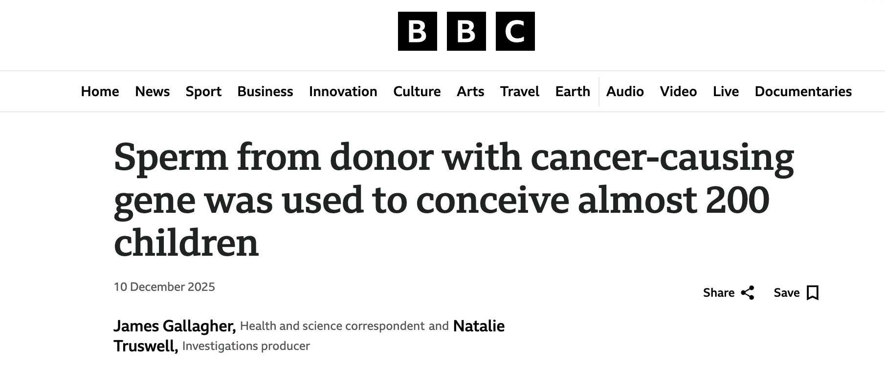 In late 2025, an international investigation revealed that sperm from a single donor had been used to conceive at least 197 children across Europe. The donor sperm came from a sperm bank in Denmark. Years later, some of those children were diagnosed with cancer. Several died. Many more now live under lifelong medical surveillance.