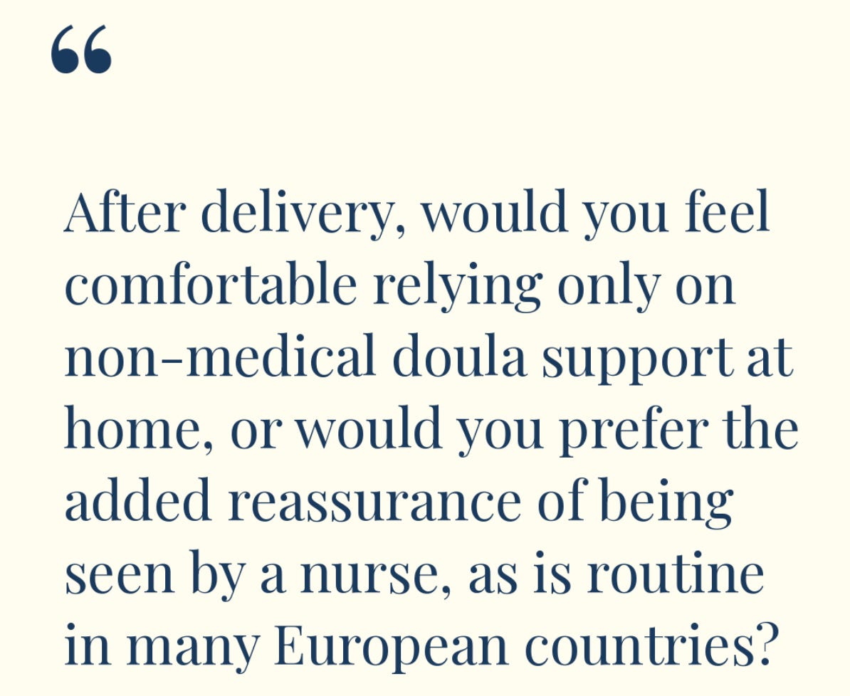 Would you be comfortable going home after delivery with only doula support or would you prefer like in Europe to be seen by a nurse?