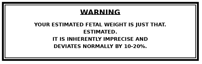This brings me back to the birth of my second child in 1979. She was in a breech position at term. My partner entertained vaginal delivery as his EFW was 7 1/2 lbs. I thought much larger, having lived with her for both pregnancies. Our first child born 8 days before EDC weighed 8 lbs 1 oz. Our daughter weighed 9 lbs and 3 ounces at delivery via C/section.