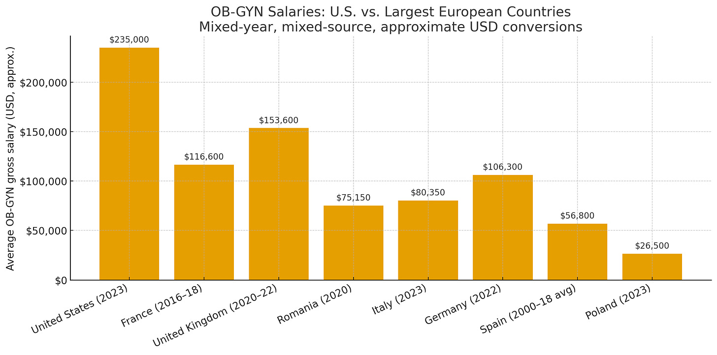 And remember the money context. Average OB-GYN pay in the United States sits around two to three times that of many European peers, often in the 200–300 thousand dollar range versus roughly 60–150 thousand dollars in large European systems, depending on country, seniority, and public versus private work. Kahneman would predict strong loss aversion when a policy threatens perceived income or pricing control, even if universal coverage would bring steadier payment and less administrative grind. Krugman would note that organizations defending a high-price, multi-payer market are effectively defending weak risk pooling. So while the AMA and ACOG often present themselves as pro-patient, their policy posture has usually been cautious to hostile toward universal, first-dollar national coverage. The result is that they help preserve a fragmented system that raises friction at the point of care, drives delayed prenatal and postpartum services, and, in aggregate, contributes to our higher maternal mortality compared with Europe.